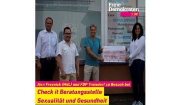 13.08.2020 Unser Besuch in „Check it“ Beratungsstelle Sexualität und Gesundheit in Troisdorf Gestern waren wir mit Jörn Freynick, Landtagsabgeordneten und Sprecher der LSBTI* der FDP-Fraktion des Landtags NRW, zu Besuch in „Check it“ Beratungsstelle Sexualität und Gesundheit im Rhein-Sieg Kreis, Troisdorf. Mehr dazu